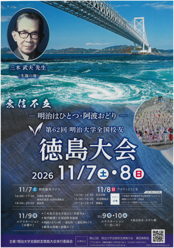 明治大学全国校友 徳島大会が2026年11月に開催されます